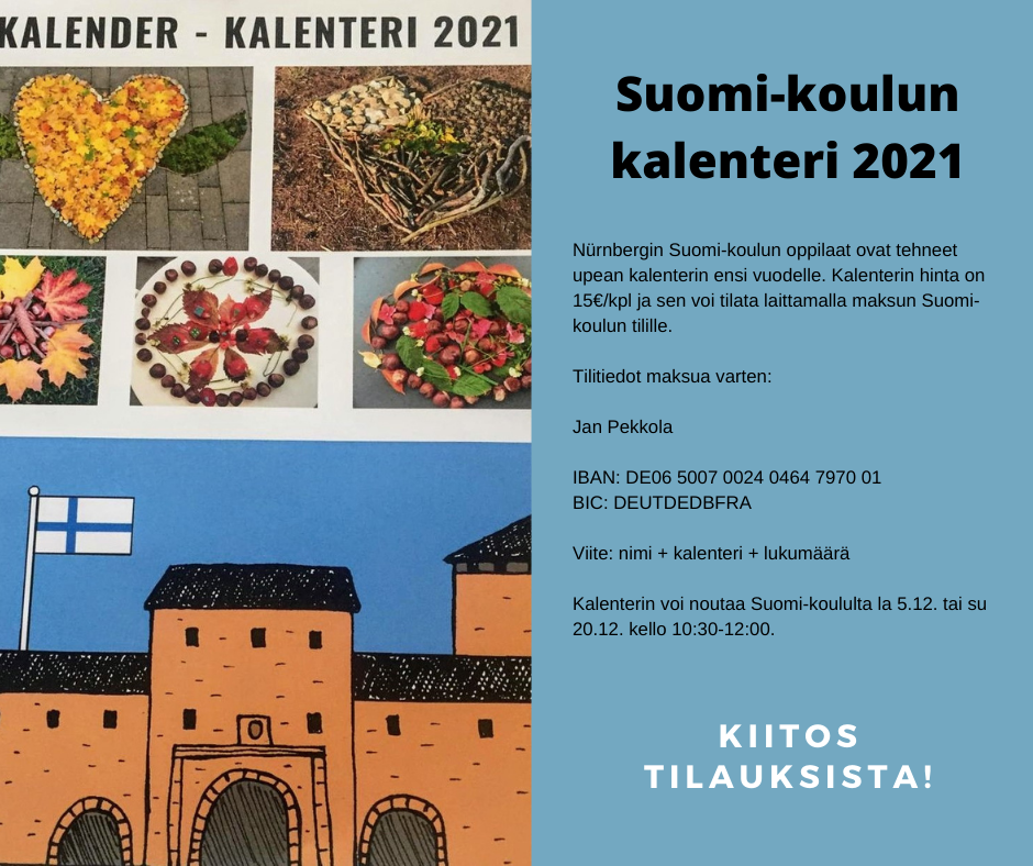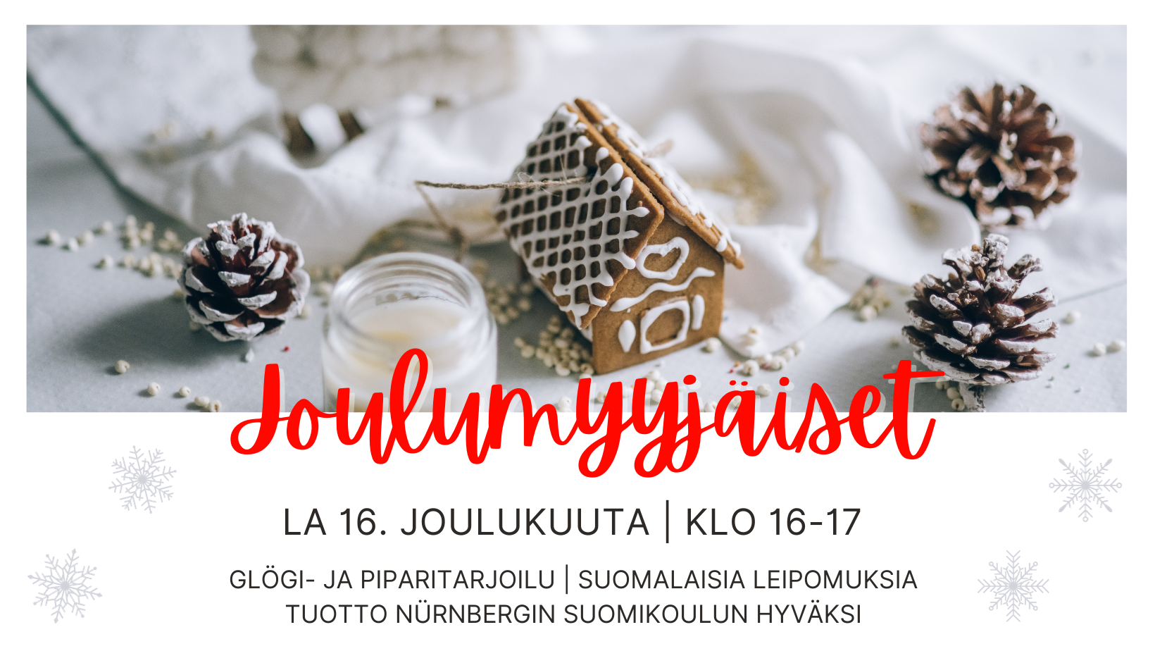 Lämpimästi tervetuloa Nürnbergin suomalaisen kielikoulun järjestämiin joulumyyjäisiin lauantaina 16.12.2023 klo 16 ja sen jälkeen laulamaan kauneimpia joululauluja klo 17 alkaen. Tapahtumaan on vapaa pääsy.